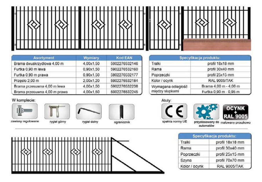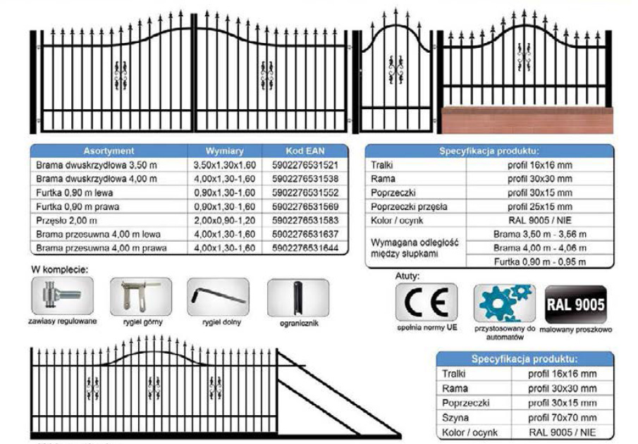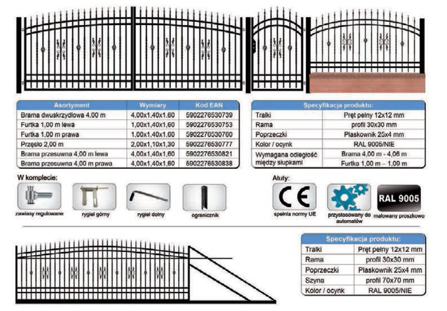 Bramy rozwierne oraz przesuwne, przęsła ogrodzeniowe